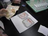 ・綿布に試薬をつけて絞るときに、ビニール手袋を使うこと。
