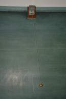 - 振り子の支持部はナイフエッジを用いたデリケートなものではなく、単に糸の末端を木製の板に固定した単純なものである。精度はやや損なわれるが、装置の設置、取り扱いがより簡単である。